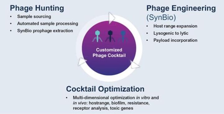 Daneben gibt es noch drei präklinisches Pipeline-Kandidaten für die Indikationen Mukoviszidose (P. aeruginosa), atopische Dermatitis (S. aureus) und Darmkrebs (F. nucleatum). In Klammern stehen jeweils die bakteriellen Erreger, die durch den entsprechenden Phagencocktail anvisiert werden.