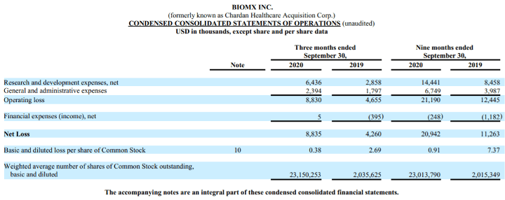 Quelle: BiomX Q3 10-Q-Filing